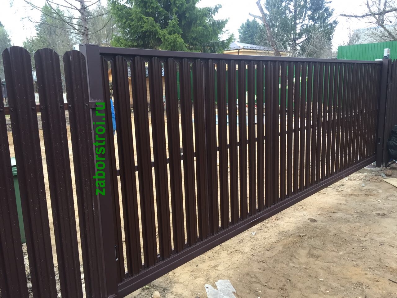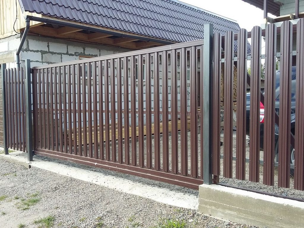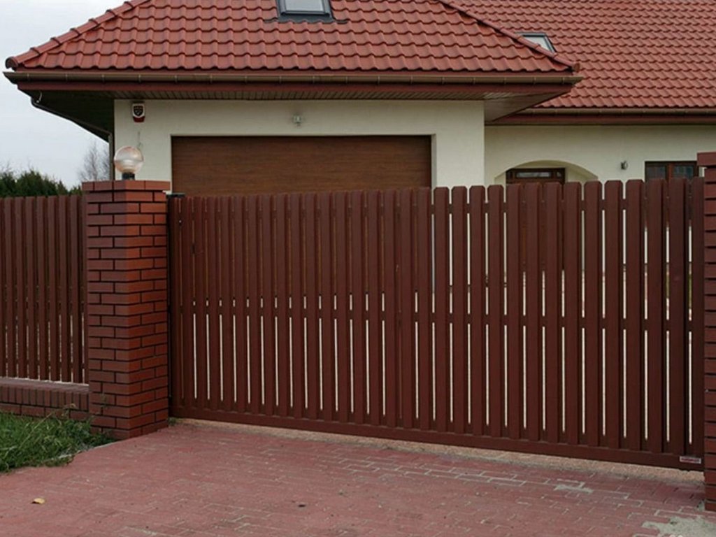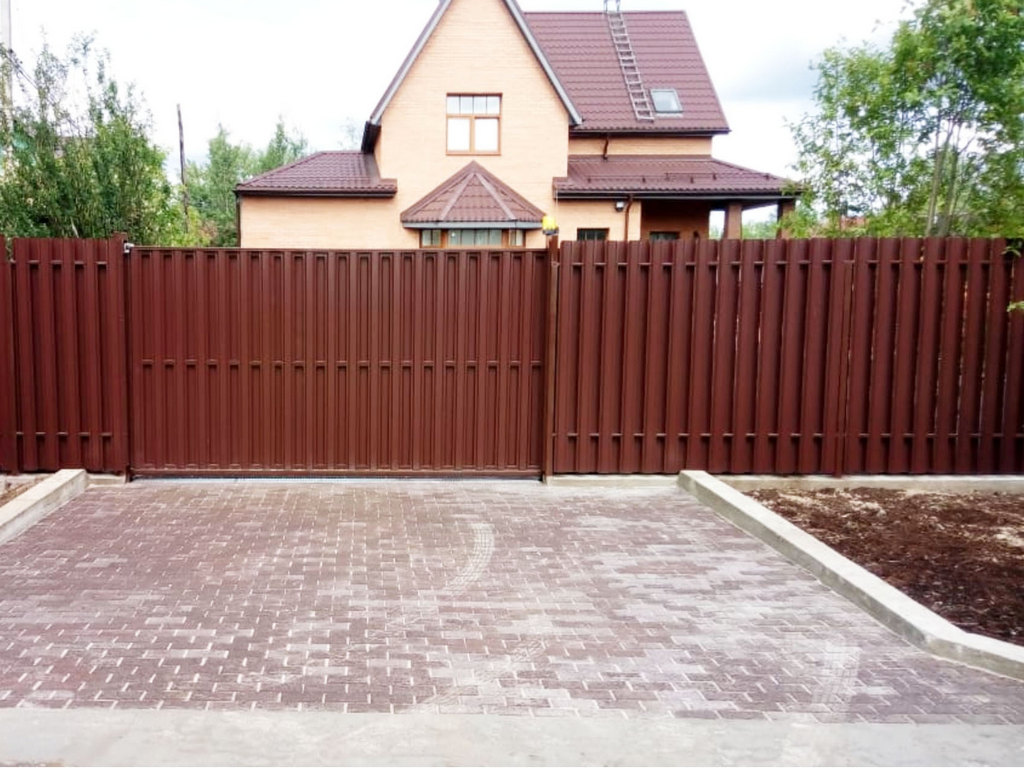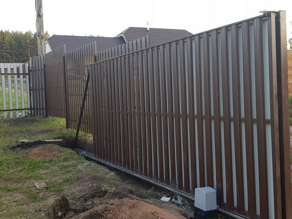 Заборы из евроштакетника с откатными воротами пример 5